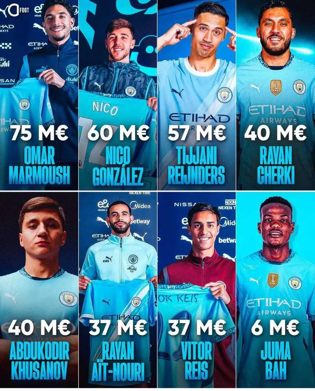 截至目前,曼城有4笔重大签约,分别是4000万欧的努里、几乎免签的贝蒂内利、4200万欧莫切尔基和7000万欧的赖因德斯,累计投入超1.5亿欧,算上冬窗的2.2亿欧,今年曼城已花费3.7亿欧元!
